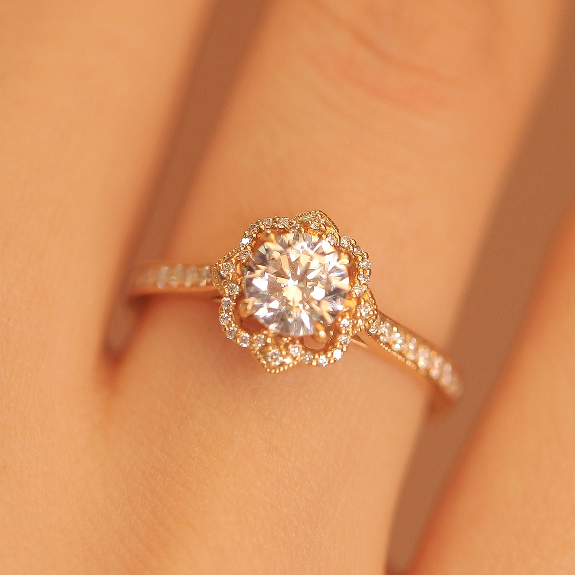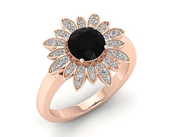 Flower Ring Rose Gold Sunflower Ring Custom Moissanite Etsy White Gold Promise Ring Classic Halo Engagement Ring Custom Gold Rings
